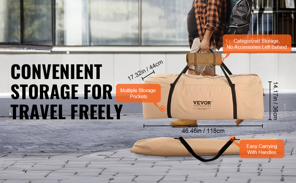 Náš jurtový stan ponúka nielen pohodlný obytný priestor, ale tiež zvyšuje pohodlie na vašich cestách. Viaceré úložné vrecká uľahčujú organizáciu a ukladanie príslušenstva stanu bez toho, aby ste ho stratili.