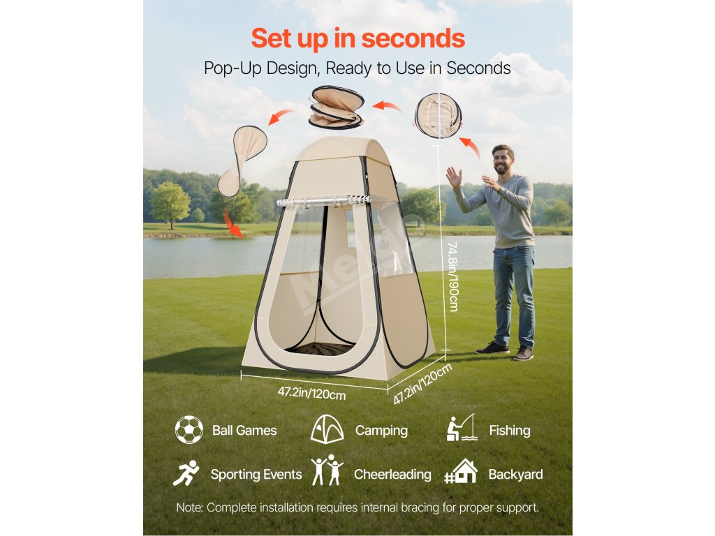 Tento vyskakovací športový stan pre jednu osobu kombinuje moderný TPU plast s odolnou tkaninou 210D Oxford a je vybavený pevným oceľovým drôteným rámom pre zvýšenú konštrukčnú stabilitu. Jeho rýchlorozkladacia konštrukcia umožňuje bezproblémové postavenie v priebehu niekoľkých sekúnd, čím šetrí čas a námahu. Ideálny na rôzne vonkajšie použitie.