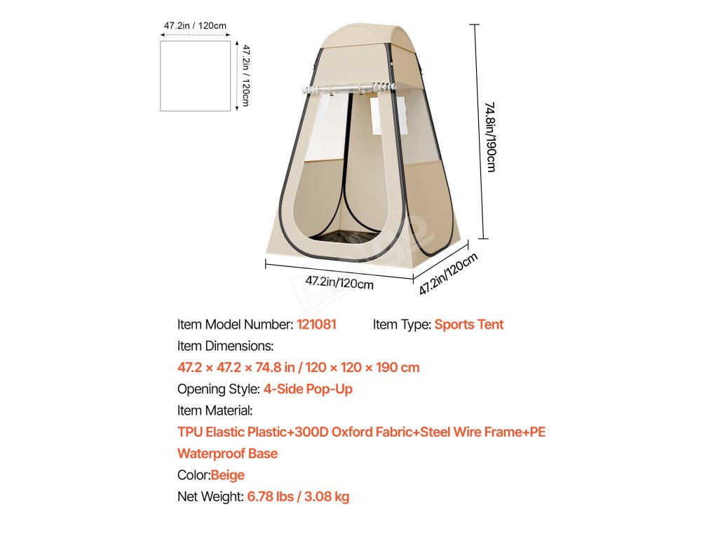 | Rozmery položky | 47.24 × 47,24 × 74,80 in / 1200 × 1200 × 1900 mm |