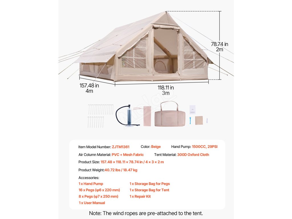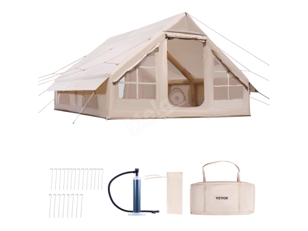 Glampingový stan ponúka 129 m² priestoru, ktorý je ideálny pre rodinu alebo priateľov. Či už ide o kempingovú výbavu alebo relaxáciu s blízkymi, tento nafukovací stan vytvorí súkromné, pohodlné útočisko na dobrodružstvá v prírode.