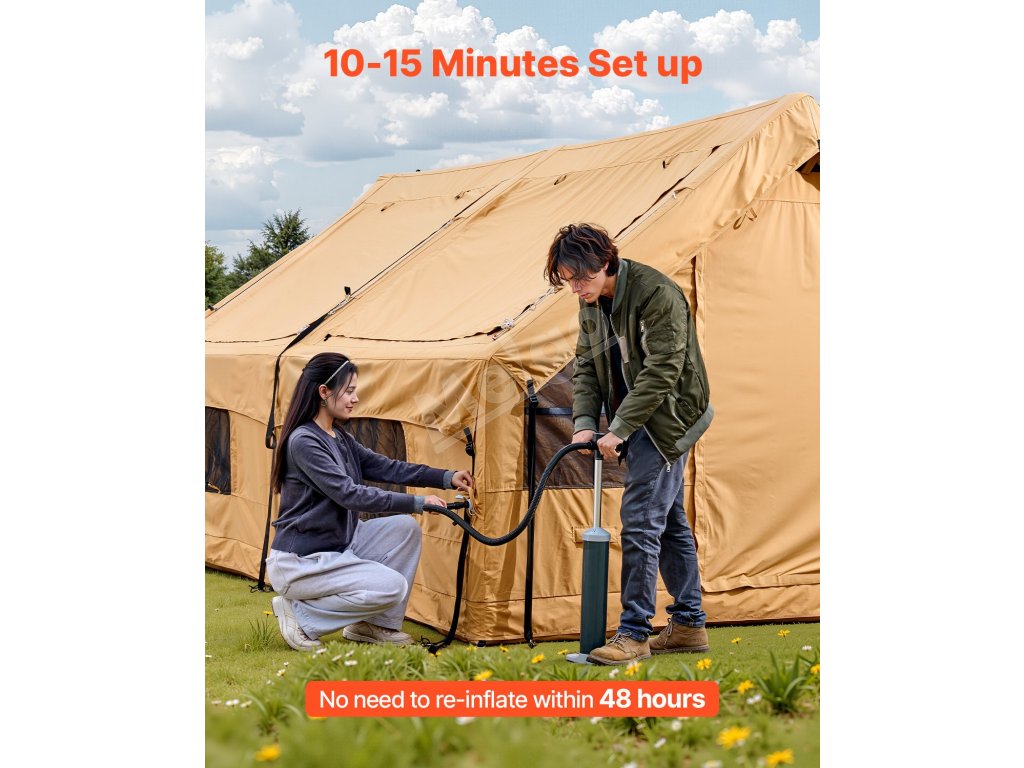 Nafukovací stan na kempovanie 8-12 osôb, 4 sezóny, 2 vchody, pumpa