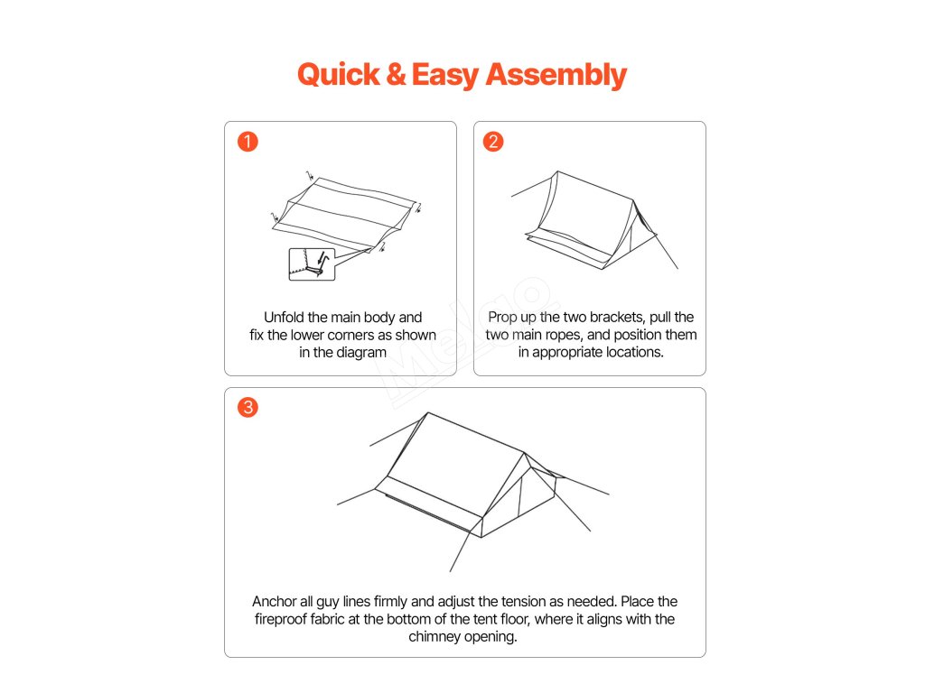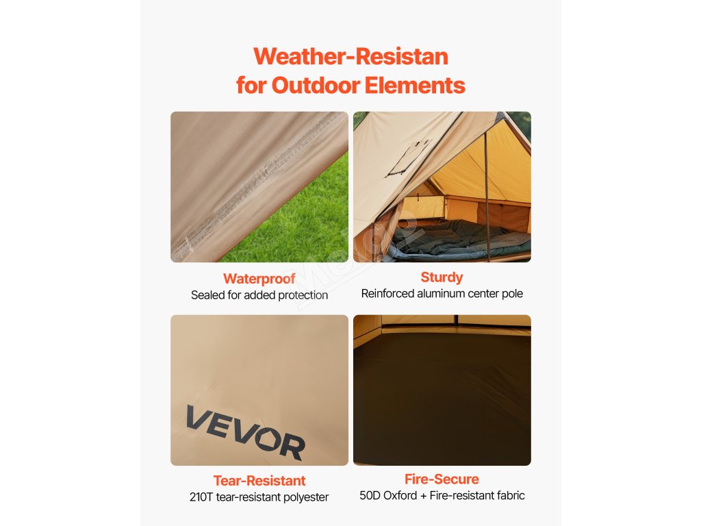Vyskúšajte horúci stan v chatkovom štýle s tyčami - navrhnutý pre outdoorových táborníkov, ktorí uprednostňujú bezpečnosť a pohodlie. Vystužené podporné tyče poskytujú silnú odolnosť proti vetru, vďaka čomu je stan spoľahlivý aj v náročnom počasí. Priestranný priestor ponúka dostatok miesta na rodinné varenie, odpočinok a spoločenské stretnutia.