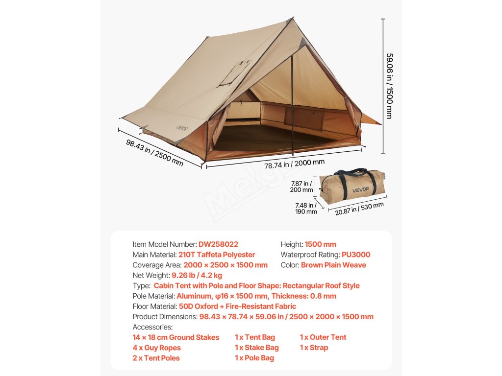 | Materiál podlahy | 50D Oxford + ohňovzdorná tkanina |