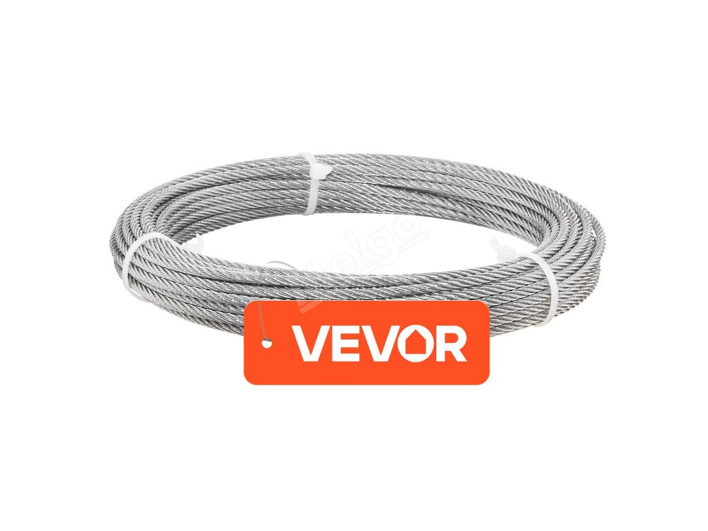 Oceľové lanko 3.2 mm, 12.2 m, 316 nerezová oceľ, 7×7, pevnosť 7.1 kN