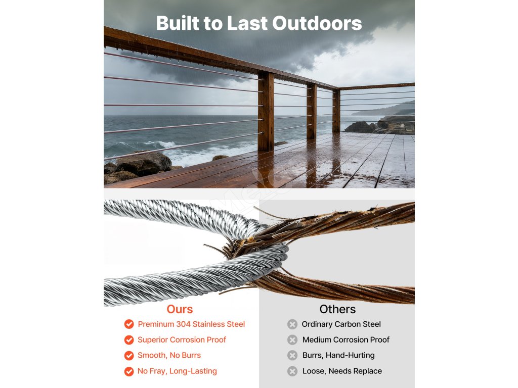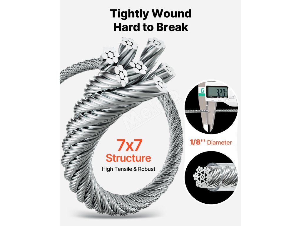 Tento prémiový kábel z nehrdzavejúcej ocele 304 s rozmermi 7x7 a PVC plášťom ponúka vysokú odolnosť proti korózii a je vhodný pre vnútorné aj vonkajšie projekty. Používate ho na zábradlia, ploty, mreže a reťazové osvetlenie – je ideálny pre majiteľov domov, záhradníkov a domácich majstrov, ktorí chcú bezpečné, odolné a efektívne inštalácie.