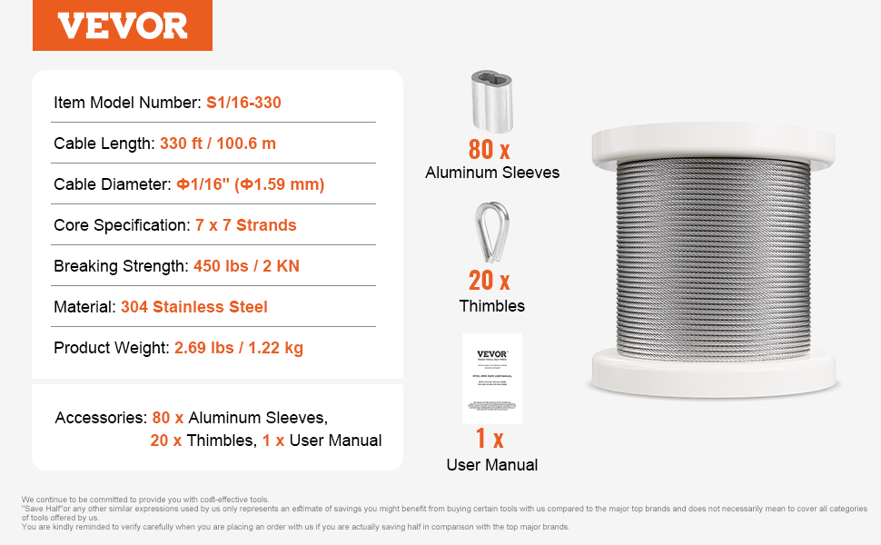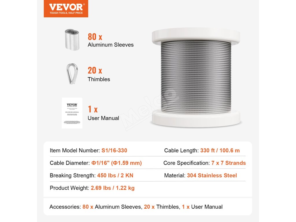 Lano VEVOR z nehrdzavejúcej ocele - odolné voči vonkajším výzvam!