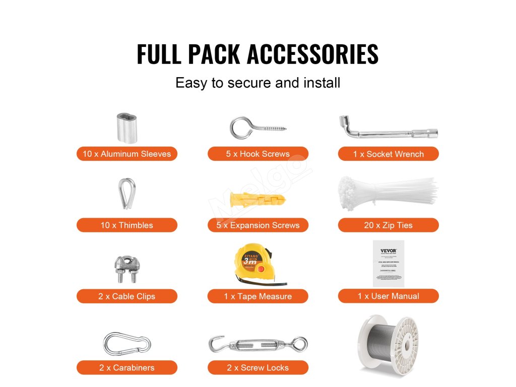 Lano VEVOR z nehrdzavejúcej ocele - odolné voči vonkajším výzvam!