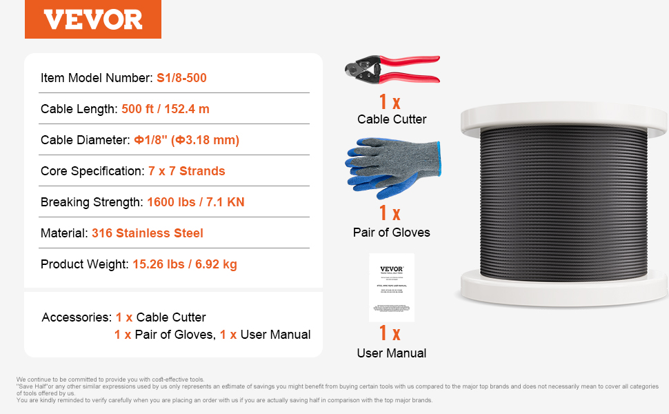 Lano VEVOR z nehrdzavejúcej ocele - odolné voči vonkajším výzvam!
