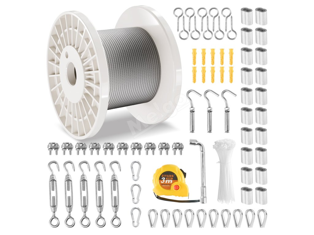 Sada nerezového lana 1/8" 100 ft 304 124 dielov 1600 lbs 7x7