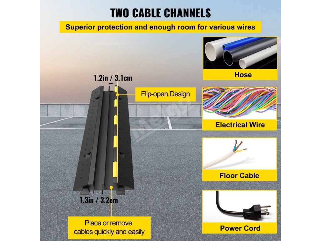 Dvojité 1,3" Š x 1,2" V / 3,2 x 3,1 cm kanály gumového príjazdového hrboľa môžu poskytnúť dostatok priestoru pre elektrické káble, elektrické vedenie, hadicu a sieťové káble predlžovačky.