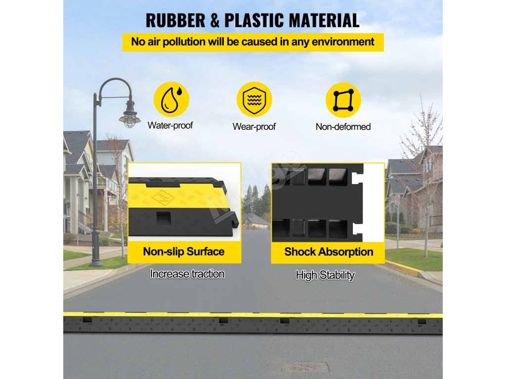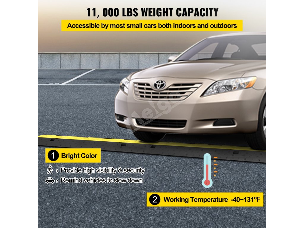 Táto gumová príjazdová nerovnosť je vyrobená z termoplastickej gumy komerčnej triedy. PVC kryt je navrhnutý s protišmykovou textúrou na povrchu, ktorá poskytuje bezpečnosť vodičom automobilov.