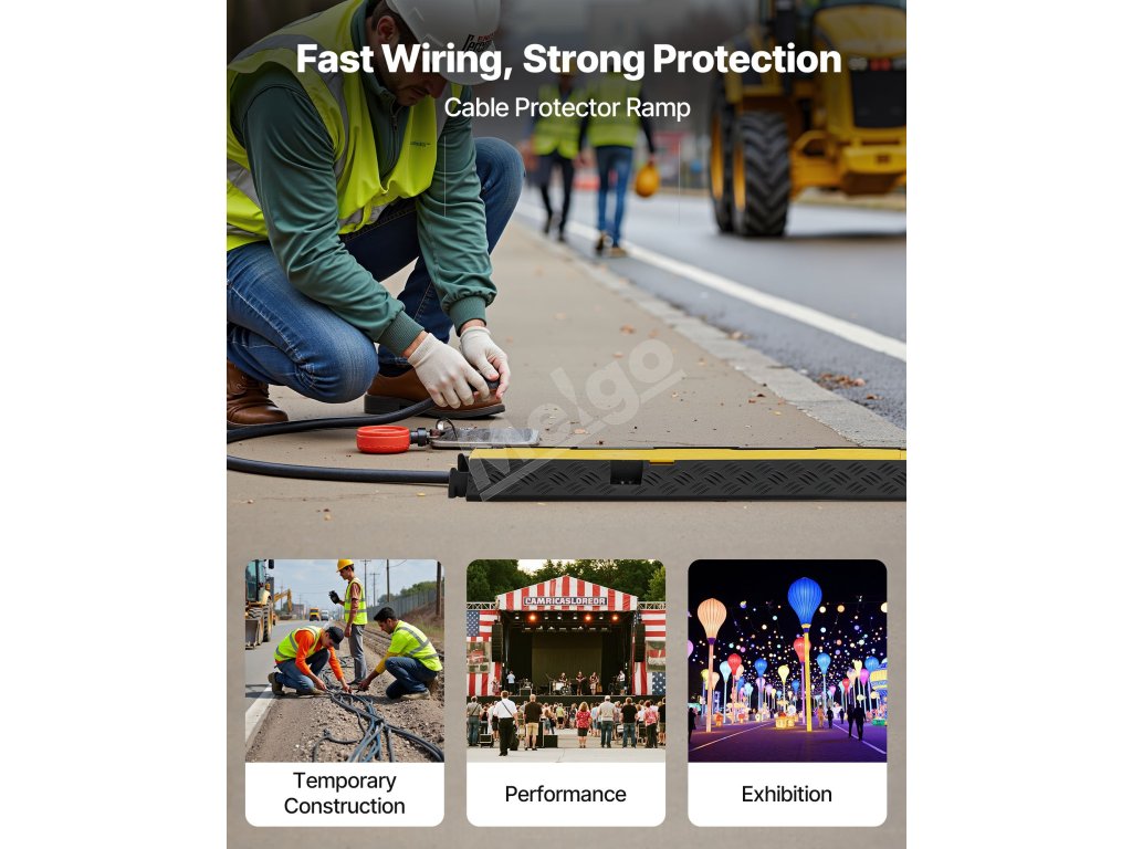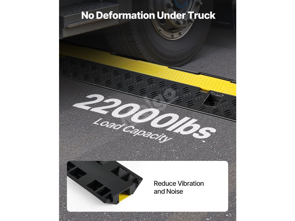 Rýchlo položte káble pomocou odklápacieho horného krytu. Vydrží až 22 000 lbs/os, nepraskne ani sa nedeformuje ani pri ťažkej prevádzke nákladných vozidiel. Dvojkanálová konštrukcia umožňuje viesť dva samostatné káble bez zamotania a pojme viacero káblov a vodičov. Ľahko sa pripája a zostáva pevne na svojom mieste.