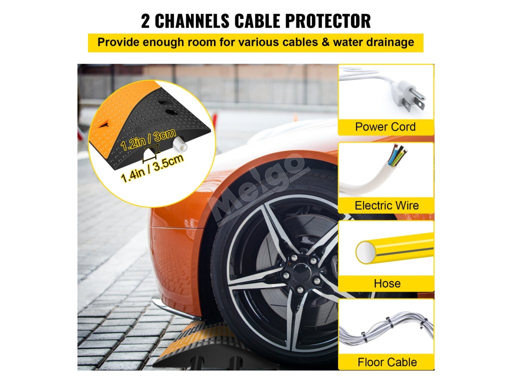 2 kanály. 1.šírka 4" x výška 1,2" / 3,5 x 3 cm Každý kanál gumového príjazdového hrboľa môže poskytnúť dostatok priestoru pre elektrické vedenie, hadicu a sieťové predlžovacie káble.