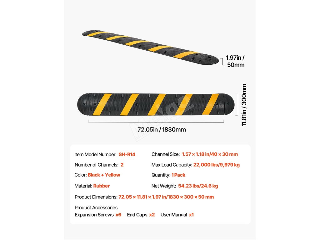 Gumený retardér rýchlosti 1830 mm, 2 kanály, nosnosť 9,979 kg/axle