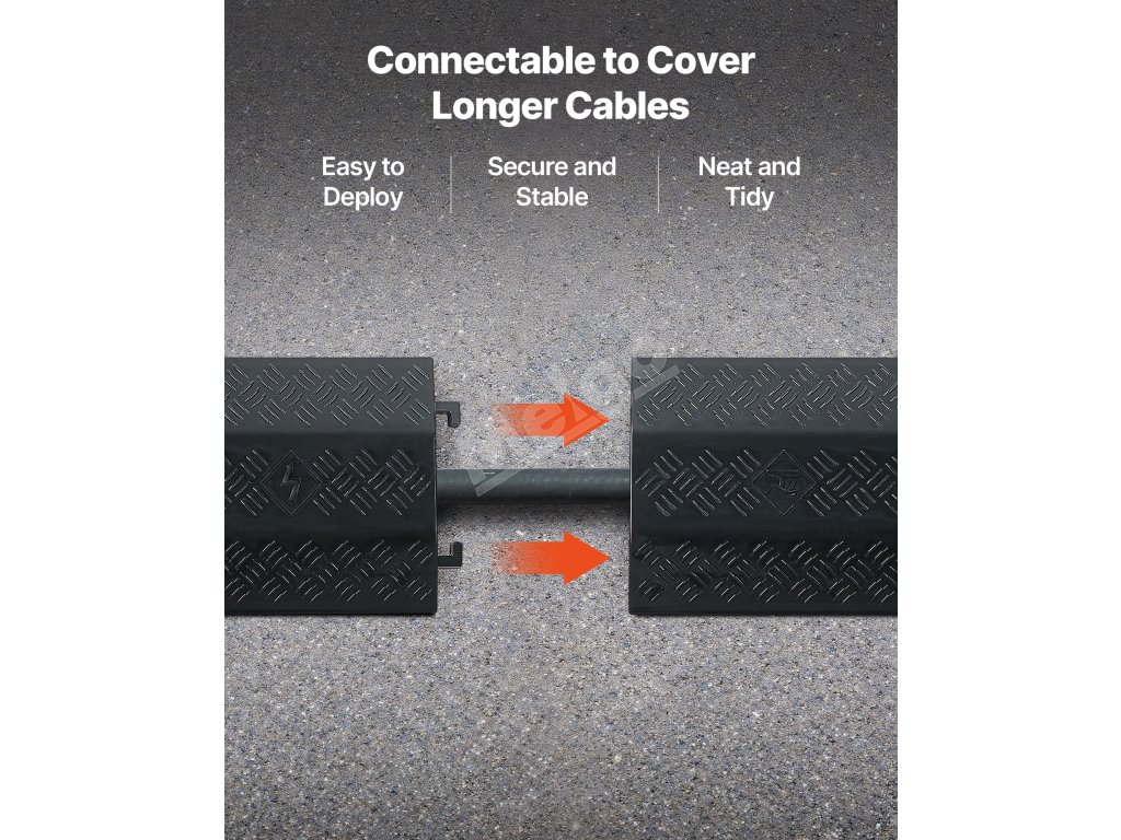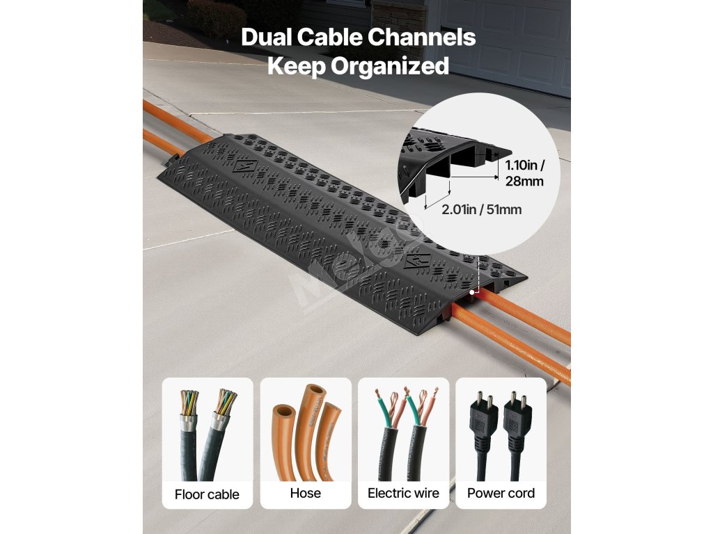 Táto ochranná rampa na káble, vyrobená z ľahkého, ale odolného PP materiálu, sa ľahko prenáša, umiestňuje a inštaluje bez nepríjemných pachov. Udrží až 17 500 lbs/os, pričom obstojí aj pri silnej premávke vozidiel. Dvojkanálová konštrukcia umožňuje viesť dva samostatné káble bez toho, aby sa zamotali.