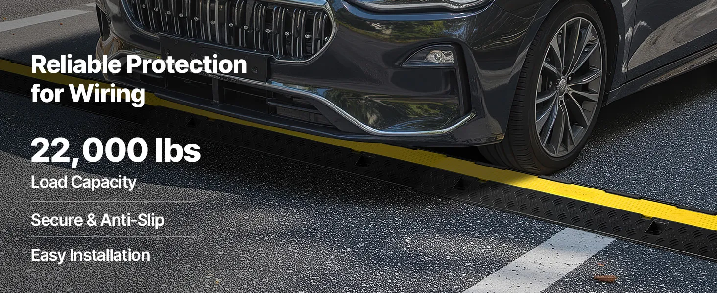 Rýchlo položte káble pomocou odklápacieho horného krytu. Vydrží až 22 000 lbs/os, nepraskne ani sa nedeformuje ani pri ťažkej prevádzke nákladných vozidiel. Dvojkanálová konštrukcia umožňuje viesť dva samostatné káble bez zamotania a pojme viacero káblov a vodičov. Ľahko sa pripája a zostáva pevne na svojom mieste.