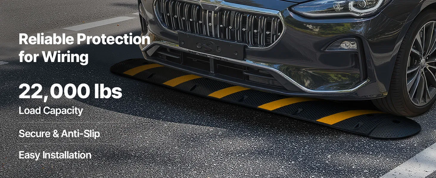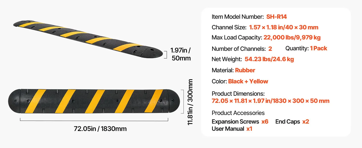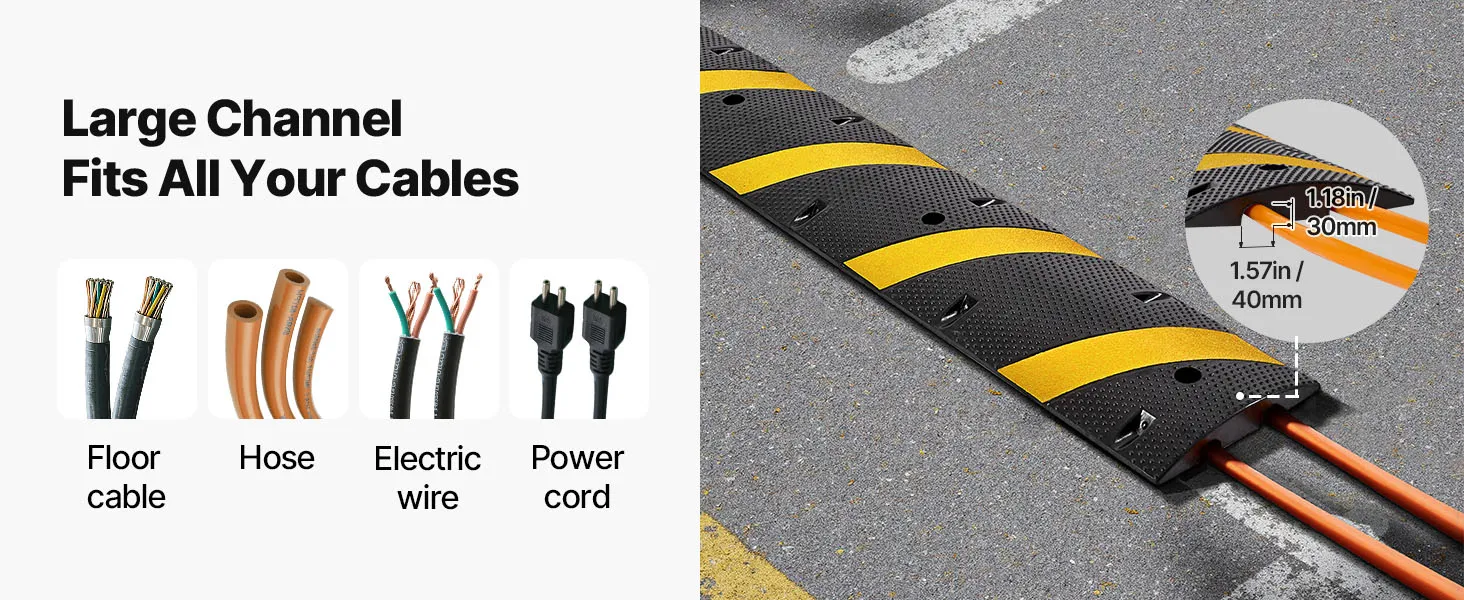 Táto ochranná rampa na káble je vyrobená z pevnej gumy odolnej proti opotrebovaniu a vydrží až 22 000 lbs/os, takže udrží vaše káble v bezpečí aj počas dopravnej špičky. Dvojkanálová konštrukcia umožňuje viesť dva samostatné káble bez toho, aby sa zamotali, zatiaľ čo priložené koncové kryty zabraňujú nebezpečenstvu zakopnutia chodcov.