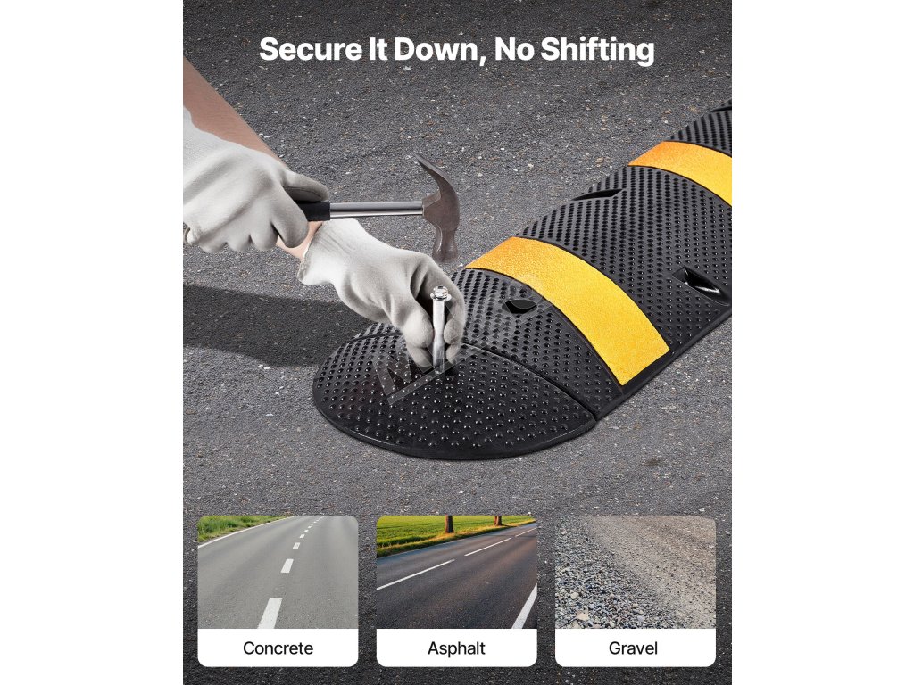 Tento dopravný rýchlostný nájazd má dizajn pohlcujúci nárazy, ktorý pomáha znižovať nárazy a minimalizuje hluk počas používania.