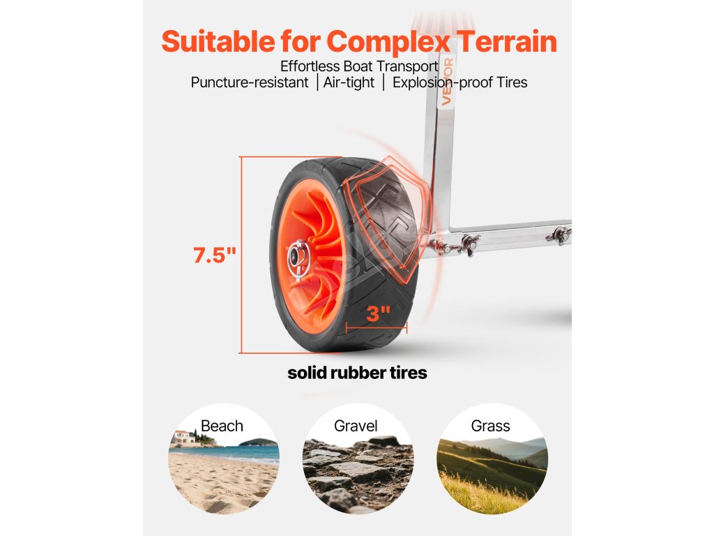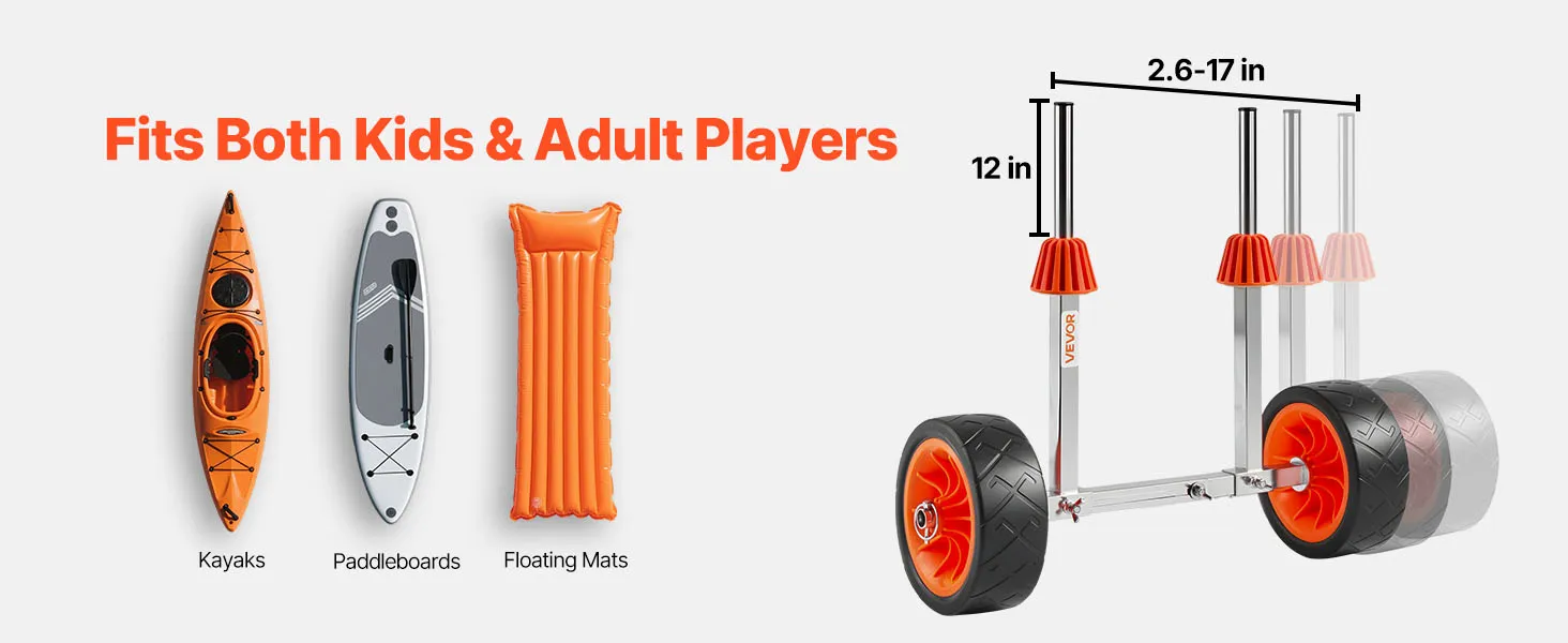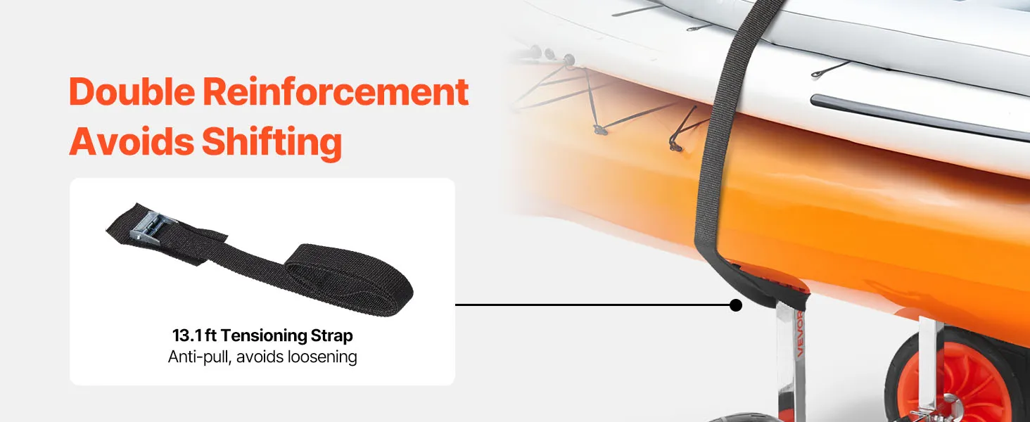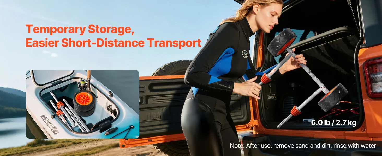 Tento kajakársky vozík s nosnosťou 250 kg je vhodný na prepravu malých lodí alebo kajakov s výbavou. Je ľahko prenosný, bezpečný a ideálny na príležitostné výlety do prírody a ľahkú prepravu.
