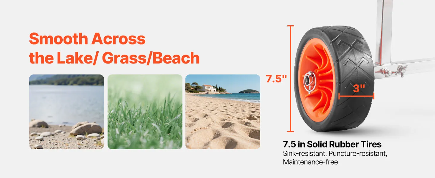 Vozík na kajak, kanoe a paddleboard – nosnosť 113.4 kg, 19.1 cm kolesá