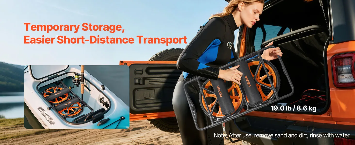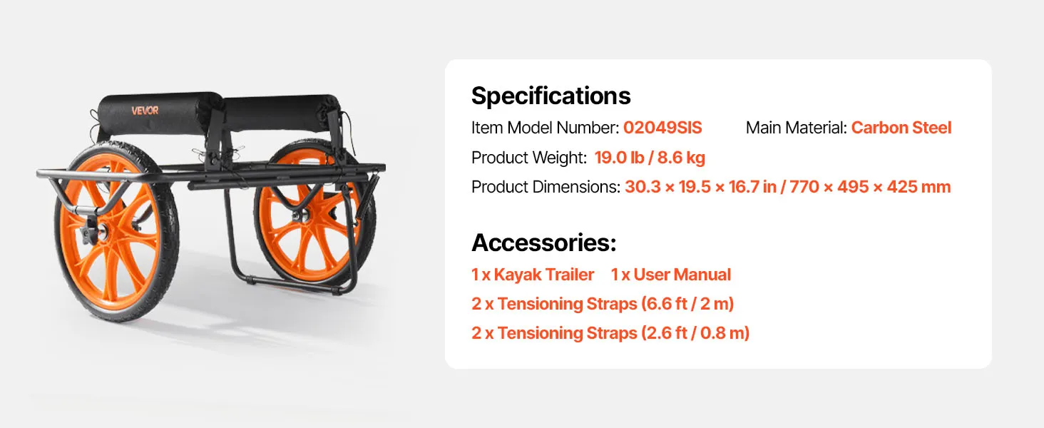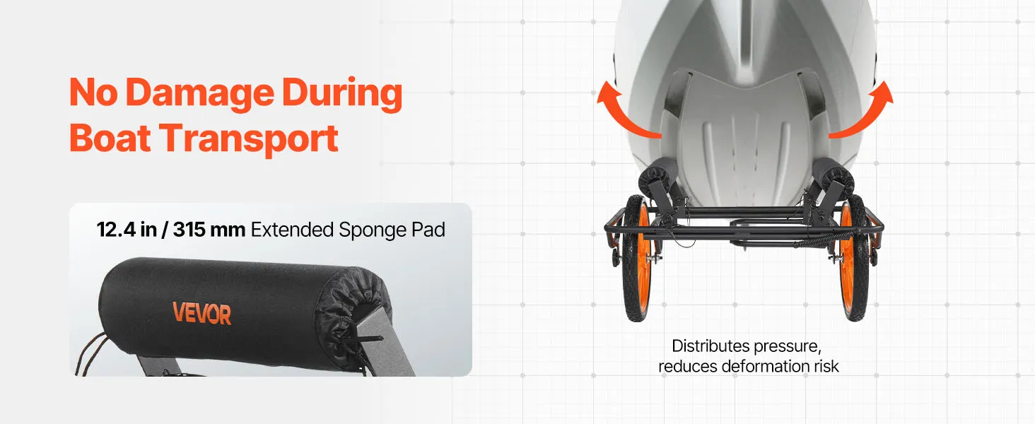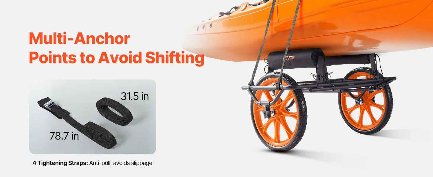 Tento kajakársky vozík s nosnosťou 330 kg je vhodný na prepravu malých lodí alebo kajakov s výbavou. Je ľahko prenosný, bezpečný a ideálny na príležitostné výlety do prírody a ľahkú prepravu.