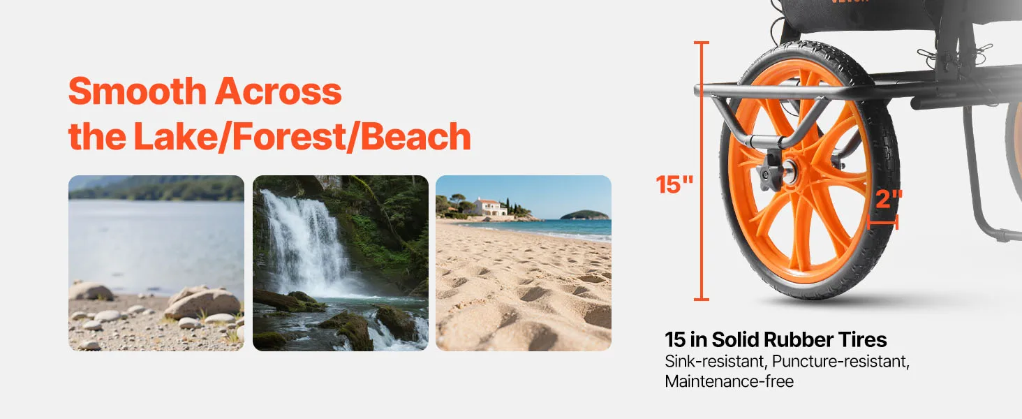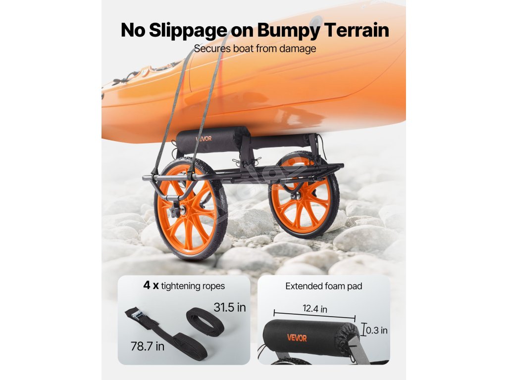 Vozík na kajak, nosnosť 149.7 kg, 38.1 cm pevné gumové kolesá