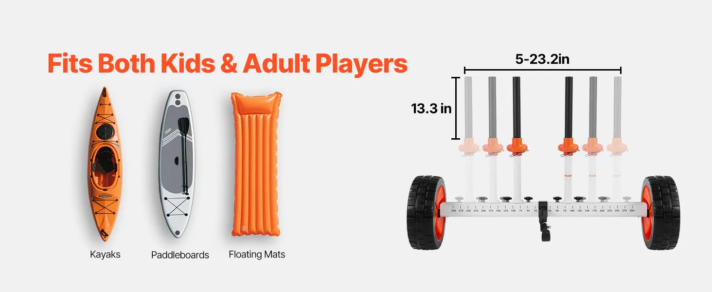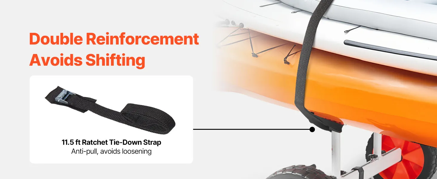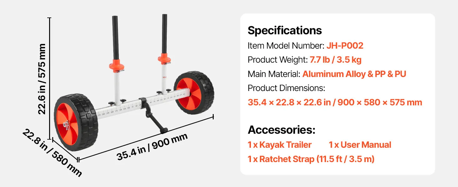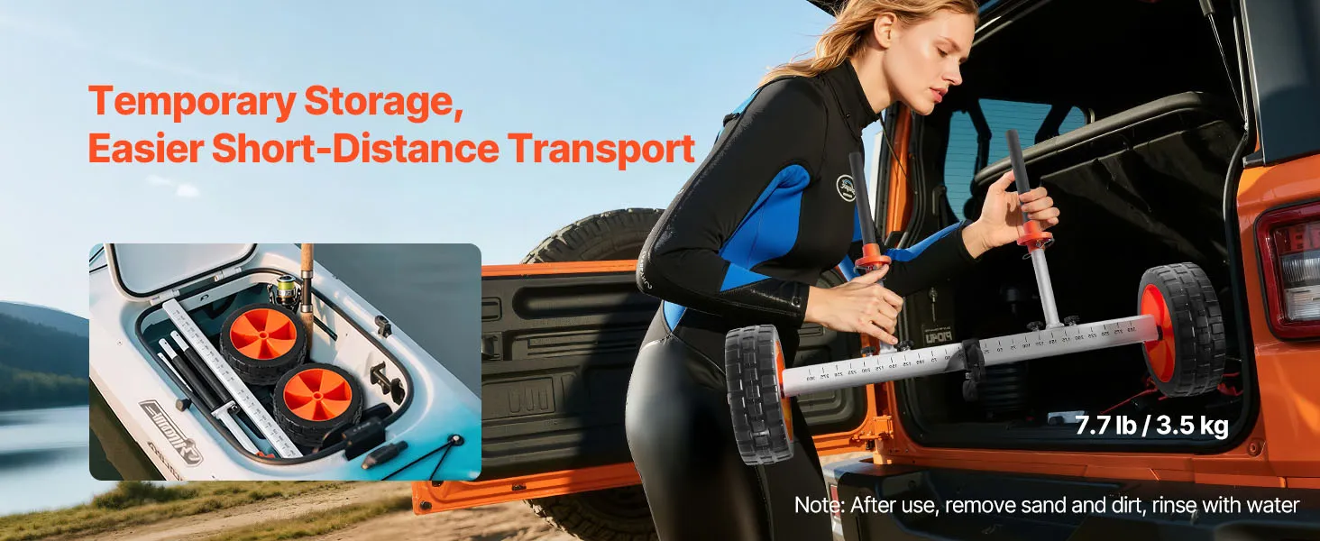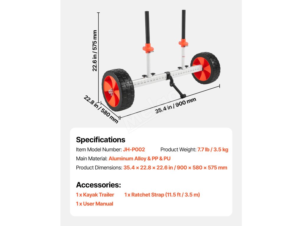 Tento kajakársky vozík s nosnosťou 230 kg je vhodný na prepravu malých lodí alebo kajakov s výbavou. Je ľahko prenosný, bezpečný a ideálny na príležitostné výlety do prírody a ľahkú prepravu.
