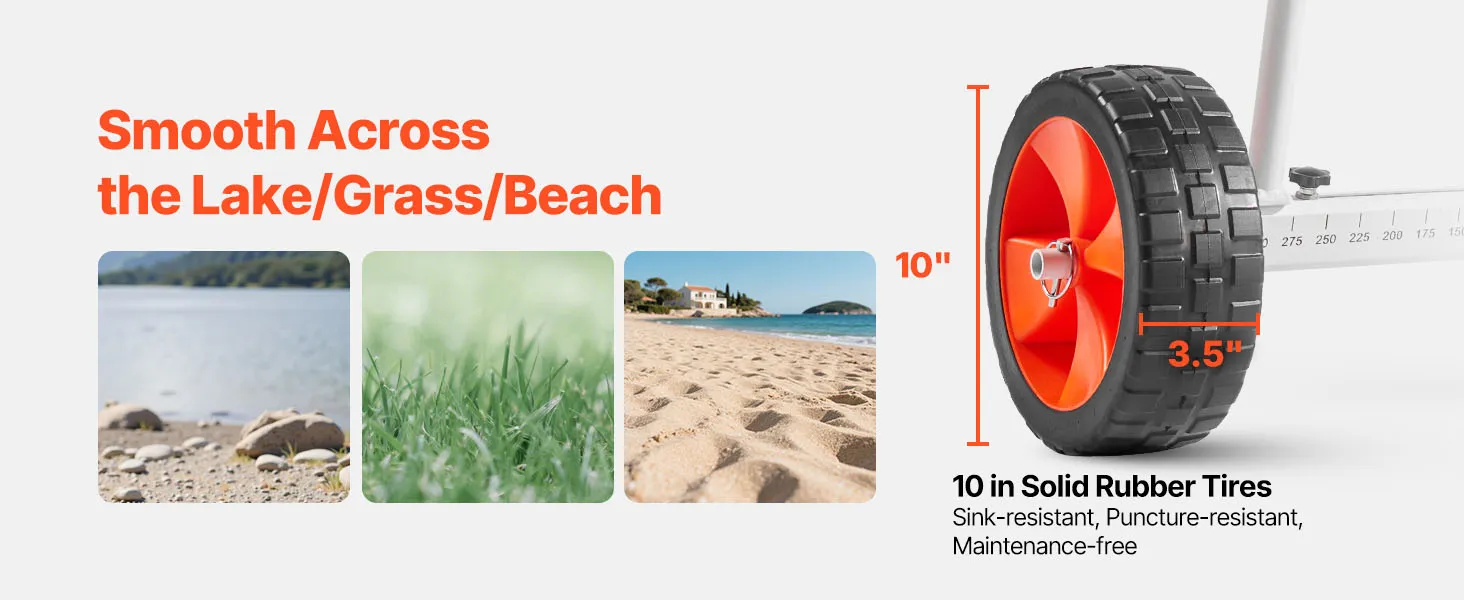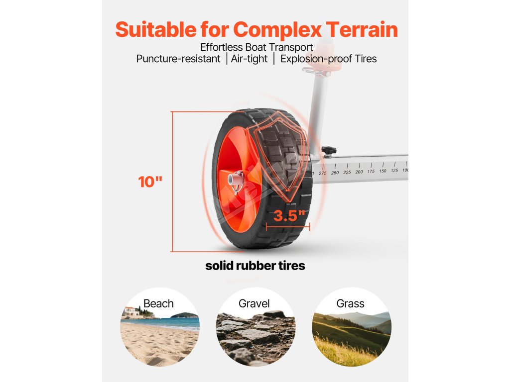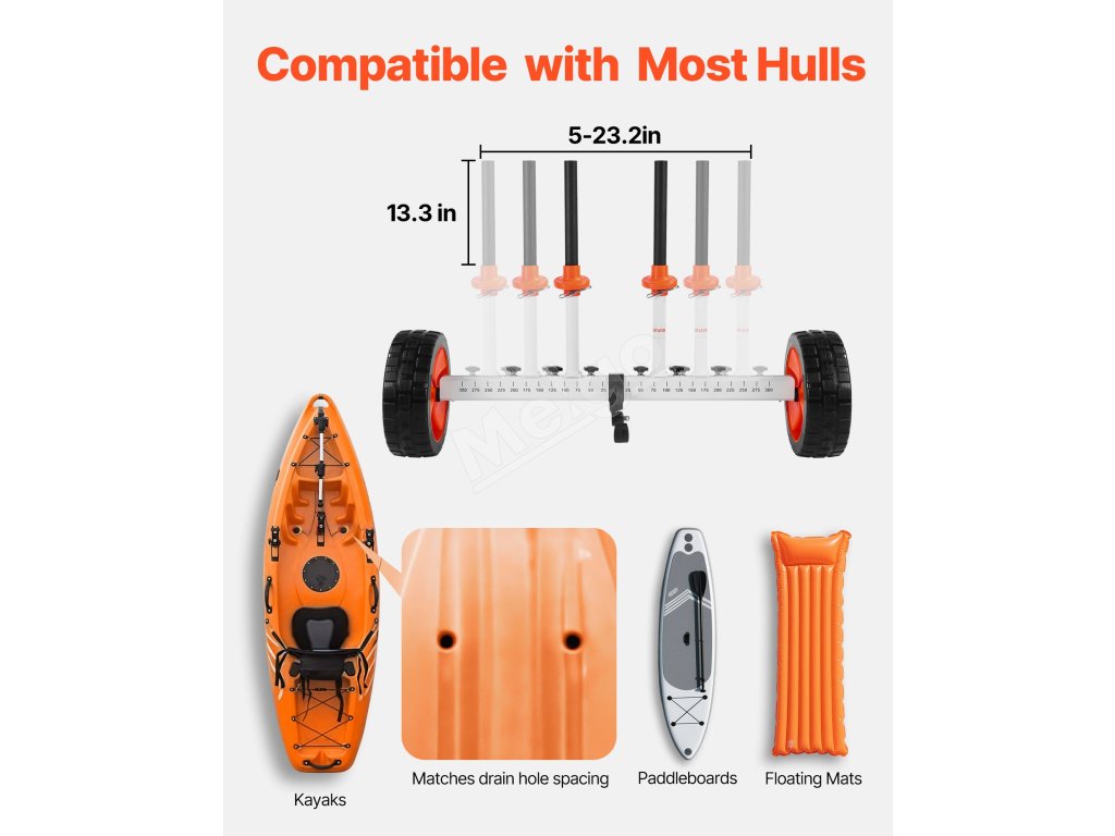 Vozík na kajak a kanoe, nosnosť 104 kg, 25,4 cm pu kolesá, stojan