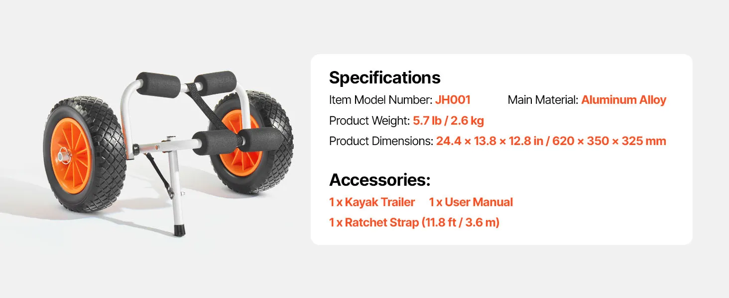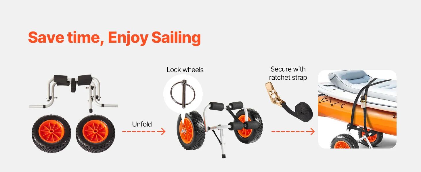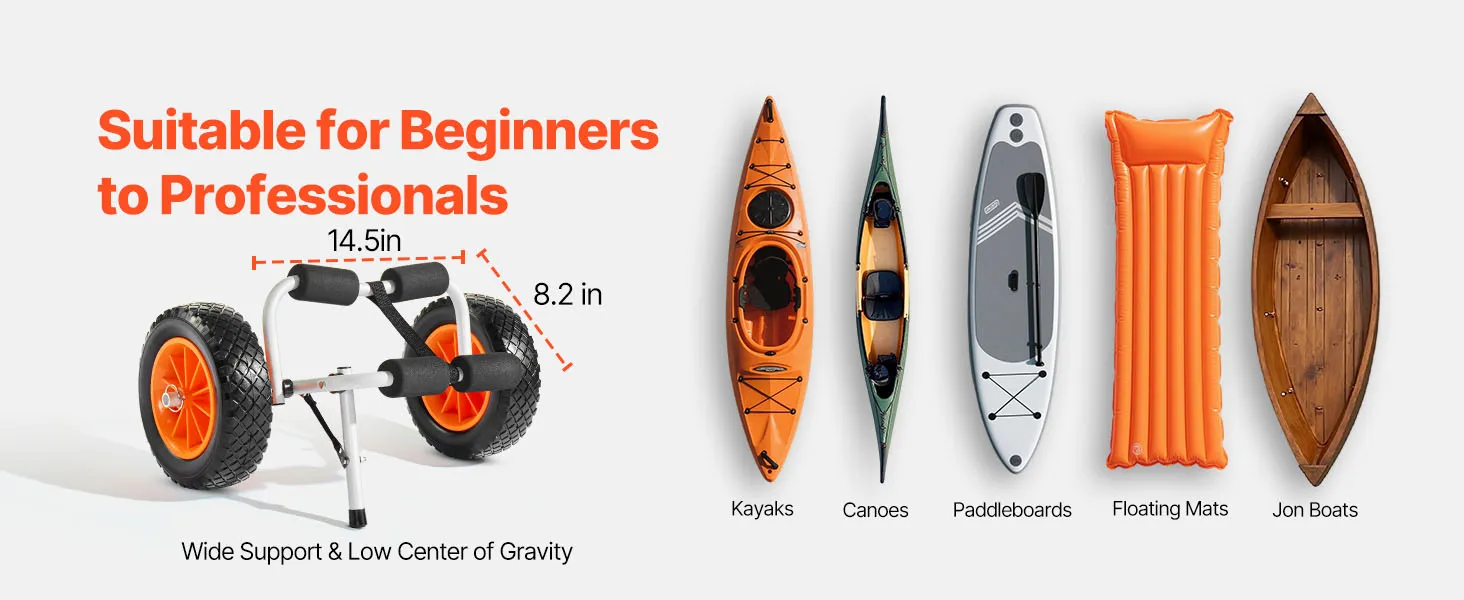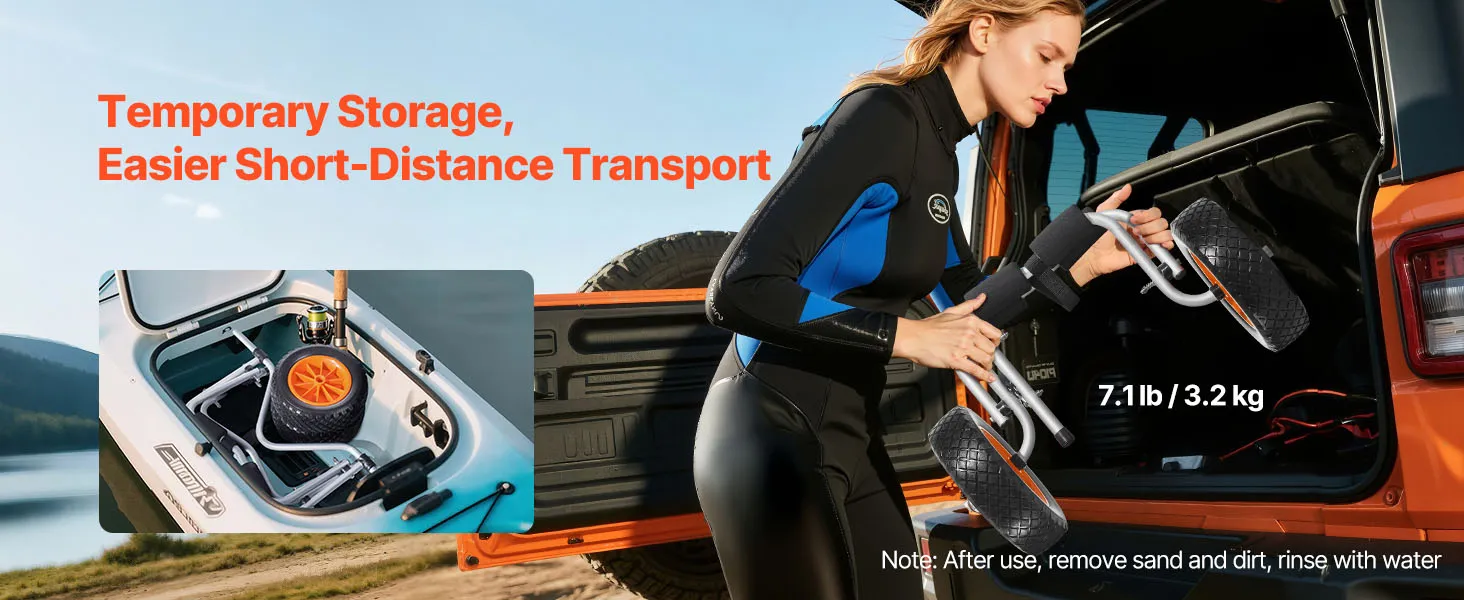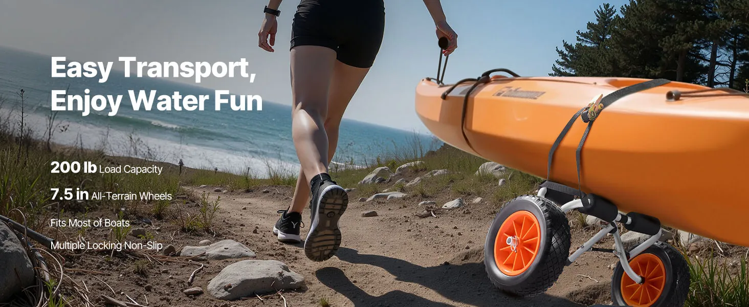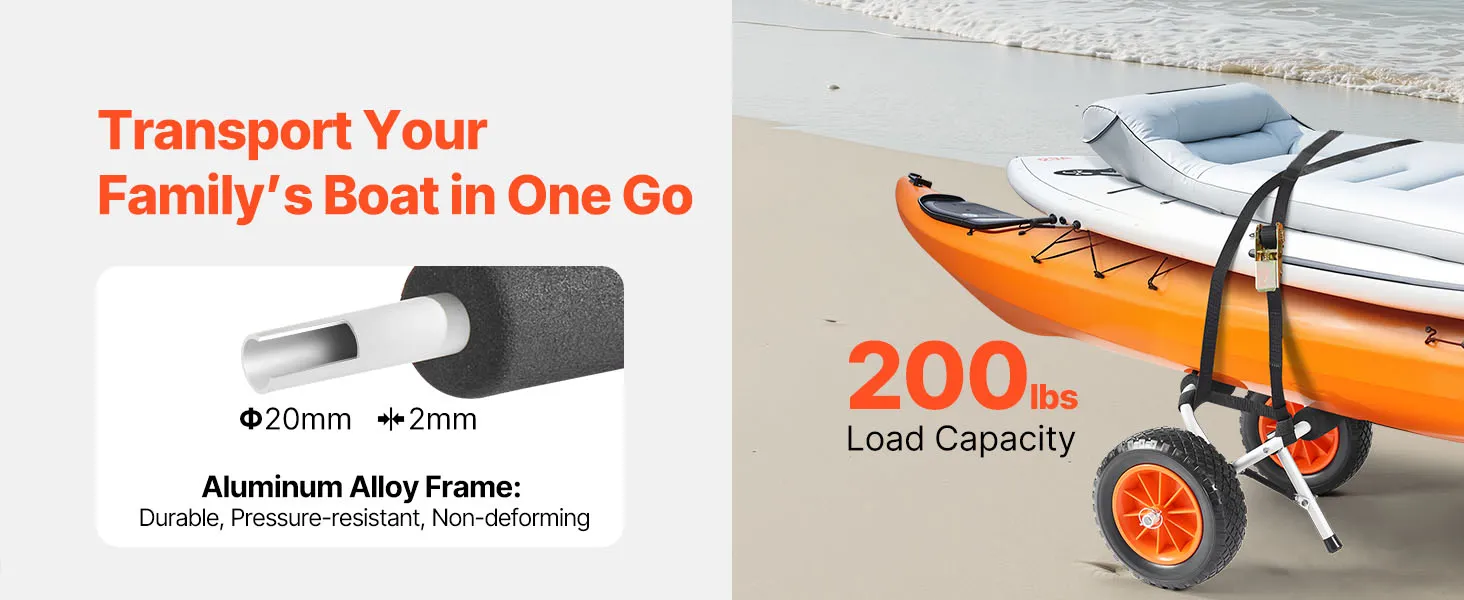 Tento kajakársky vozík s nosnosťou 200 kg je vhodný na prepravu malých lodí alebo kajakov s výbavou. Je ľahko prenosný, bezpečný a ideálny na príležitostné výlety do prírody a ľahkú prepravu.