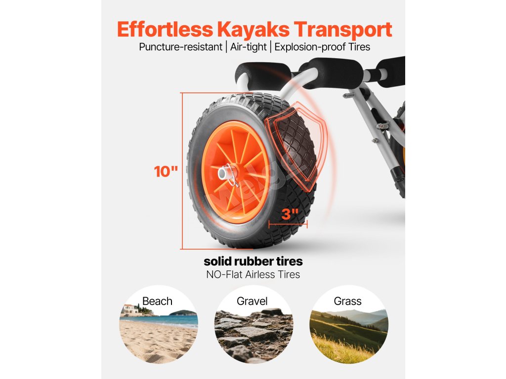 Vozík na kajak skladací nosnosť 90 kg 25.4 cm gumové kolesá ráčna