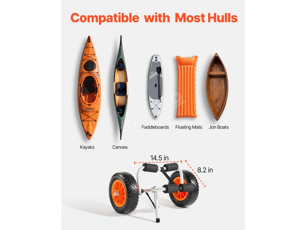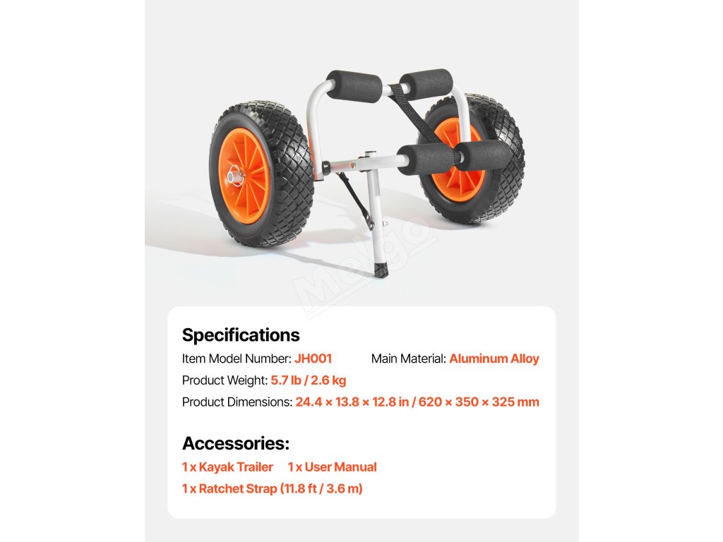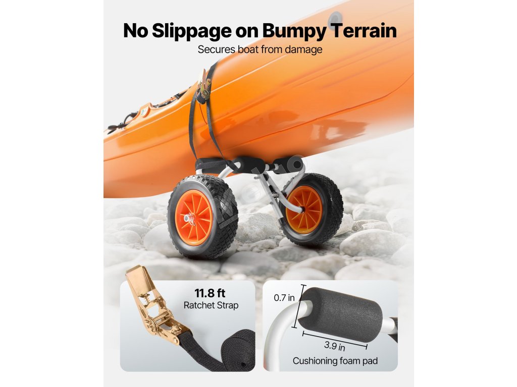 Tento kajakársky vozík s nosnosťou 200 kg je vhodný na prepravu malých lodí alebo kajakov s výbavou. Je ľahko prenosný, bezpečný a ideálny na príležitostné výlety do prírody a ľahkú prepravu.