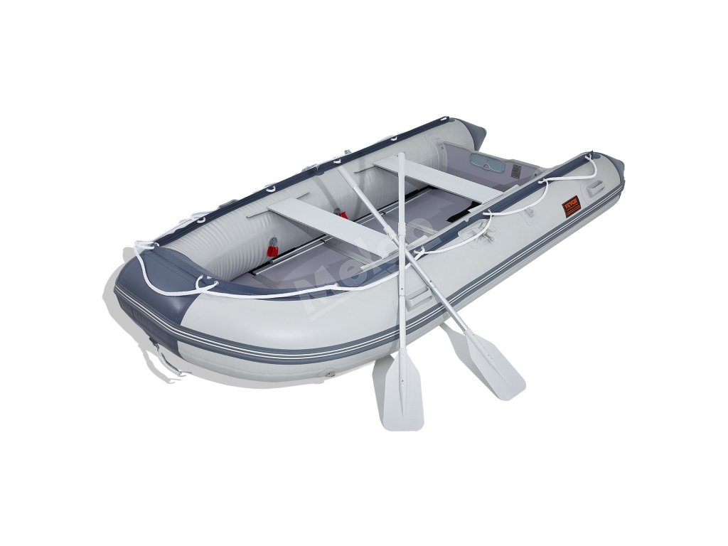 Tento nafukovací čln sa dodáva so všetkým potrebným príslušenstvom: pedálovou pumpou, 2 hliníkovými lavičkami, 2 veslami a súpravou na opravu. Čln sa rýchlo nafúkne a je ideálny na núdzovú záchranu, pomoc pri povodniach a rekreačný rybolov. Na zadnú časť môžete nainštalovať aj motor (do 15 koní) na plavbu bez použitia rúk.