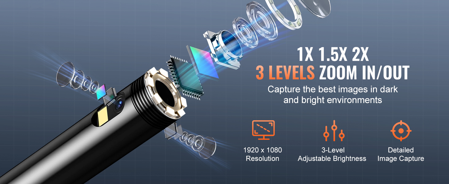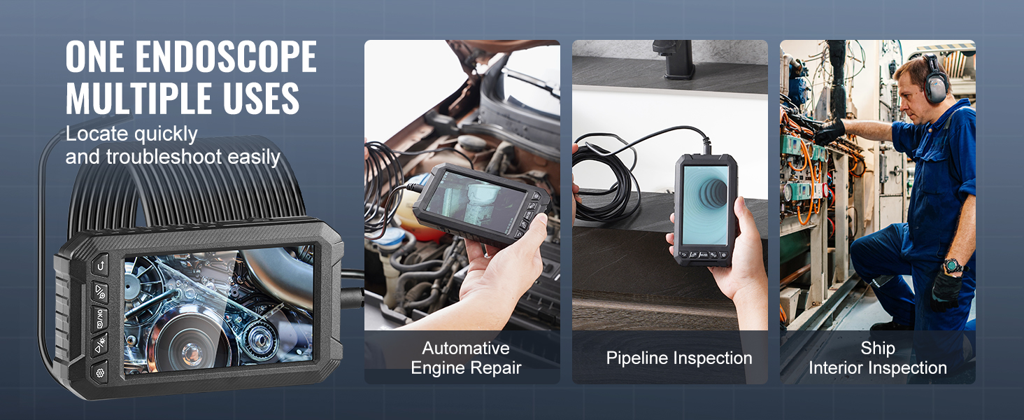 Prekonajte náročné prístupové oblasti a zvládnite náročné kontroly s kamerou VEVOR s optickým ďalekohľadom. Je to základný nástroj na údržbu automobilov, mechanickú kontrolu, opravu potrubia, kontrolu domácich spotrebičov, kontrolu kanalizácie a odtoku.