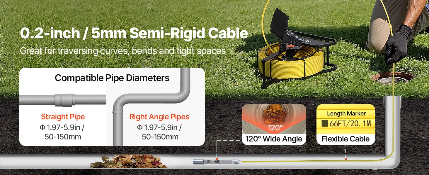 Náš polotuhý hadí kábel ponúka veľkú odolnosť a plynulejšiu prevádzku, bez námahy prechádza cez ohyby a dlhé potrubia. Označenie dĺžky kábla vám navyše pomôže ľahko identifikovať zadanú vzdialenosť.