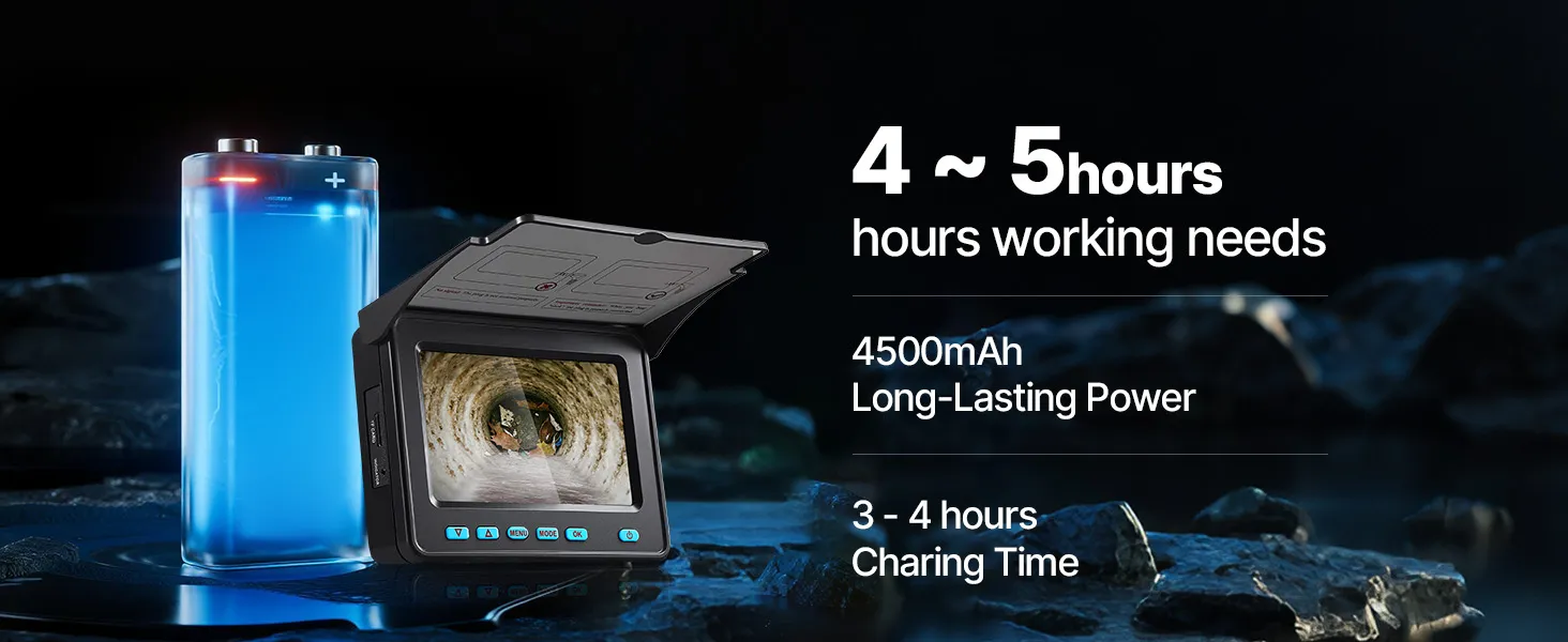 Vodovodná kamera je vybavená 4,3-palcovým HD displejom, ktorý poskytuje jasný obraz na podrobné kontroly. Bez námahy zachytíte každý detail pomocou funkcií nahrávania videa, fotografovania.