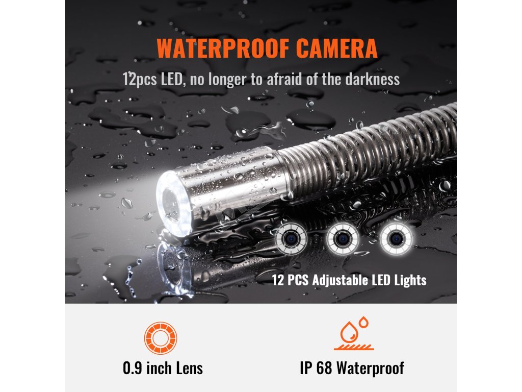 Naša 9-palcová kamera na kontrolu kanalizácie s rozlíšením 720p vám poskytne vizuálnu informáciu o stave potrubia. Pomocou nej môžete prevziať kontrolu nad akýmkoľvek priestorom a nájsť riešenie s VEVOR!