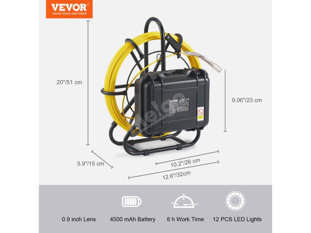 Naša vysokokvalitná 9-palcová kamera na kontrolu kanalizácie s rozlíšením 720p vám poskytne vizuálnu informáciu o stave potrubia. Pomocou nej môžete prevziať kontrolu nad akýmkoľvek priestorom a nájsť riešenie s VEVOR!