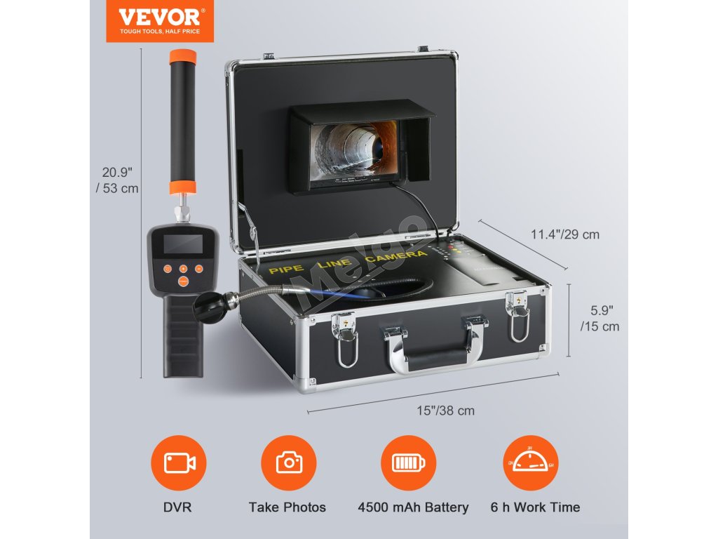 Naša vysokokvalitná 7-palcová kamera na kontrolu kanalizácie s rozlíšením 1000TVL vám môže poskytnúť vizuálnu informáciu o stave potrubia. Pomocou nej môžete prevziať kontrolu nad akýmkoľvek priestorom a nájsť riešenie s VEVOR!