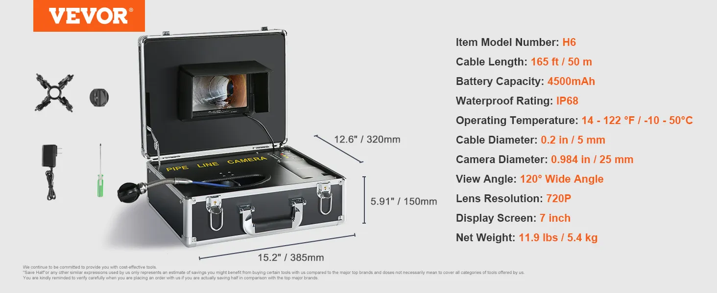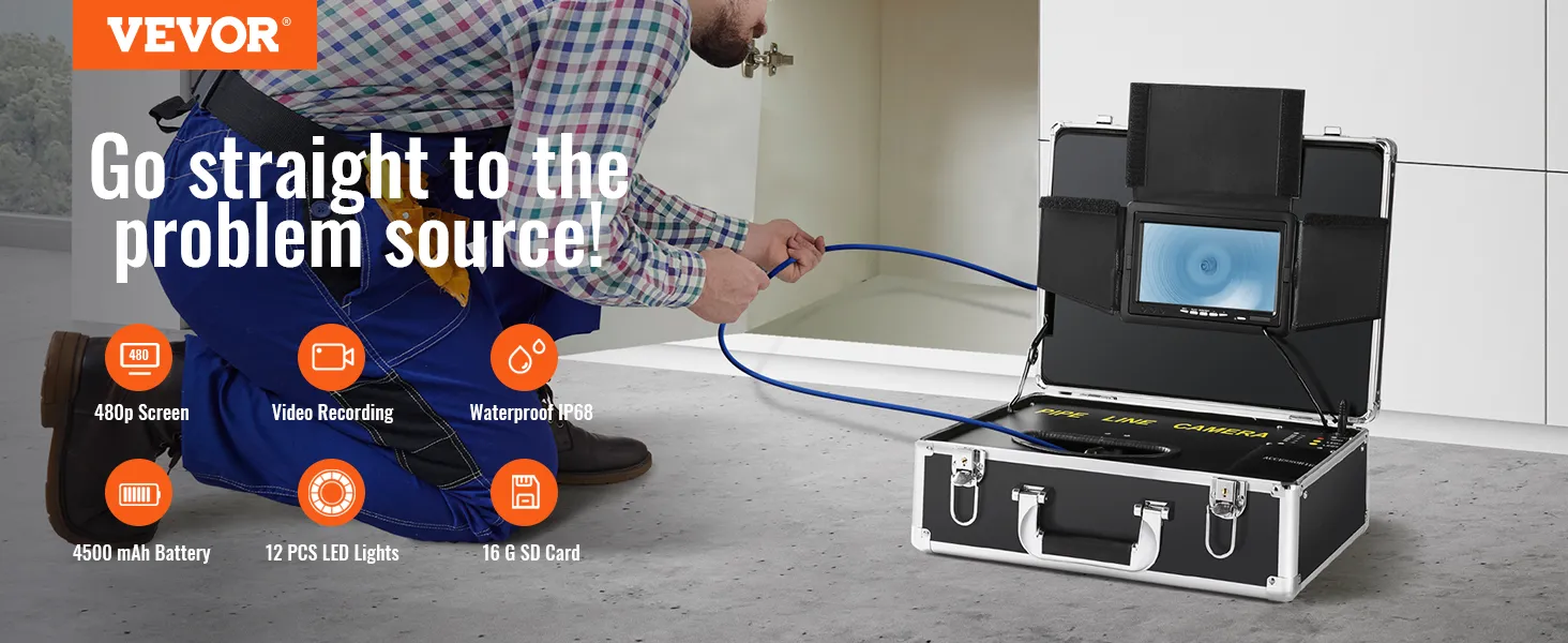 Naša vysokokvalitná 7-palcová kamera na kontrolu kanalizácie s rozlíšením 1000TVL vám môže poskytnúť vizuálnu informáciu o stave potrubia. Pomocou nej môžete prevziať kontrolu nad akýmkoľvek priestorom a nájsť riešenie s VEVOR!