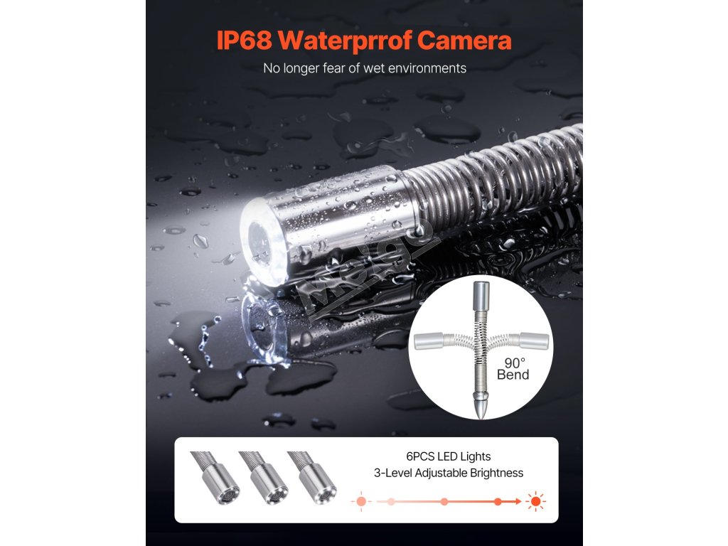 VEVOR 30m kanalizačná kamera urýchľuje a zjednodušuje kontrolu potrubia! Je vybavená 4,3-palcovým farebným LCD displejom, 6PCS nastaviteľnými LED diódami, 8500mAh nabíjateľnou batériou a predstavuje dokonalé profesionálne riešenie na precíznu kontrolu kanalizácie, odpadových potrubí a komínov.