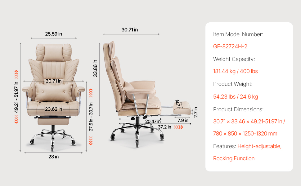 Vďaka rozsahu nastavenia výšky 0 - 3,15 palca / 0 - 80 mm sa táto manažérska stolička ľahko prispôsobí výške vášho pracovného stola jediným stlačením tlačidla. Blokovací mechanizmus na hojdacej základni zabezpečuje stabilitu stoličky a spĺňa všetky vaše rôzne kancelárske potreby.