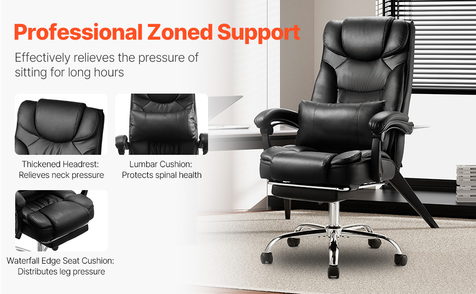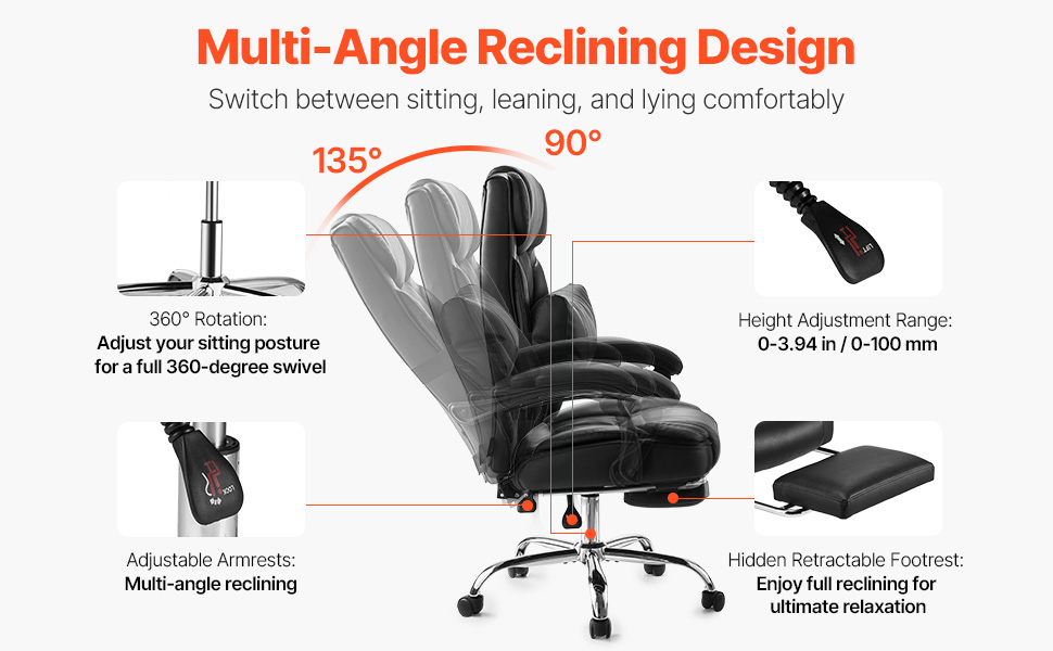 Obsahuje nastaviteľnú polohovateľnú konštrukciu, ktorá vám umožní ľahko sa oprieť a relaxovať, v spojení s nastaviteľnou opierkou nôh a zosilnenými podrúčkami, čo vám poskytne dokonalé miesto na oddych počas pracovných prestávok. Tým sa znižuje tlak na vaše ruky a chrbát, čo zvyšuje vašu produktivitu a pohodlie.