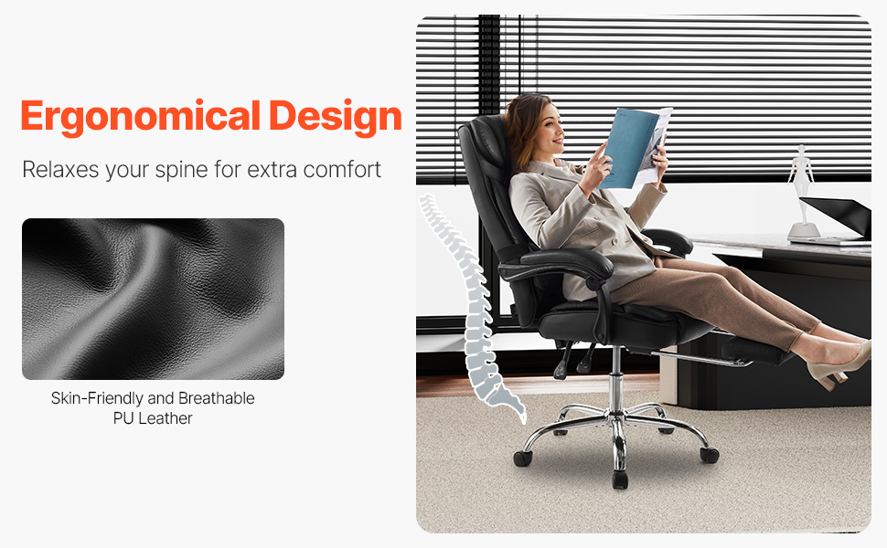 Každá drobnosť tohto manažérskeho kresla, vyrobená z odolnej kože šetrnej k pokožke a penového vankúša s vysokou hustotou, je vytvorená pre maximálne pohodlie. Či už pracujete, alebo oddychujete, pocítite rozdiel.