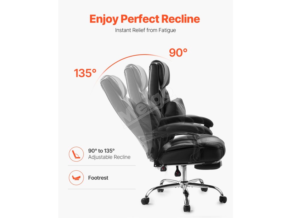 Kancelárska stolička s vysokým operadlom, pu koža, opierka nôh, 135°