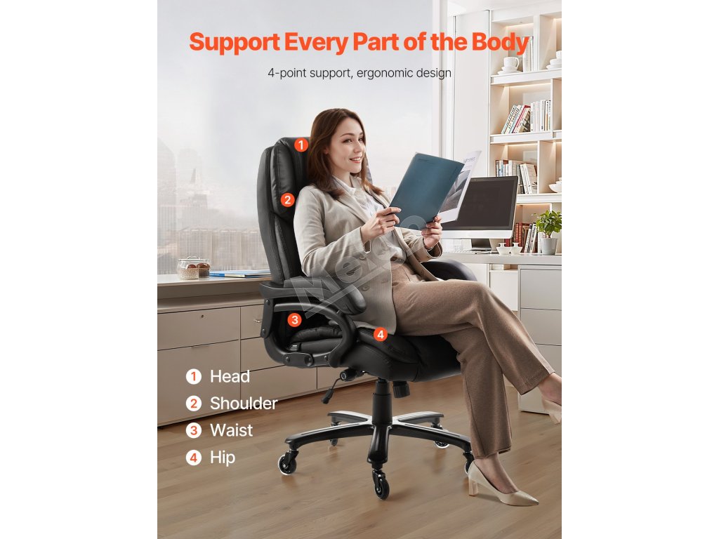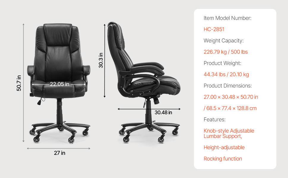 Každá drobnosť tohto manažérskeho kresla, vyrobená z odolnej kože šetrnej k pokožke a penového vankúša s vysokou hustotou, je vytvorená pre maximálne pohodlie. Či už pracujete, alebo oddychujete, pocítite rozdiel.