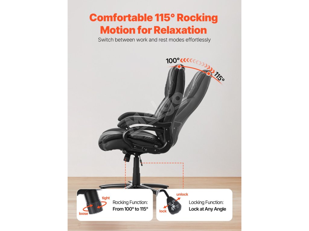 Vďaka rozsahu nastavenia výšky 0 - 3,94 palca sa táto manažérska stolička ľahko prispôsobí výške vášho pracovného stola jediným stlačením tlačidla. Blokovací mechanizmus na hojdacej základni zabezpečuje stabilitu stoličky a spĺňa všetky vaše rôzne kancelárske potreby.
