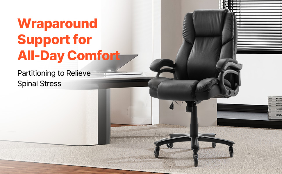 Odolná 500 lbs / 226,8 kg vystužená kovová základňa v kombinácii s kolieskami odolnými proti opotrebovaniu a tichými kolieskami zabezpečuje plynulý 360° pohyb. Táto pevná konštrukcia udržiava stabilitu vašej manažérskej kancelárskej stoličky, takže sa môžete sústrediť na prácu bez obáv z kolísania.