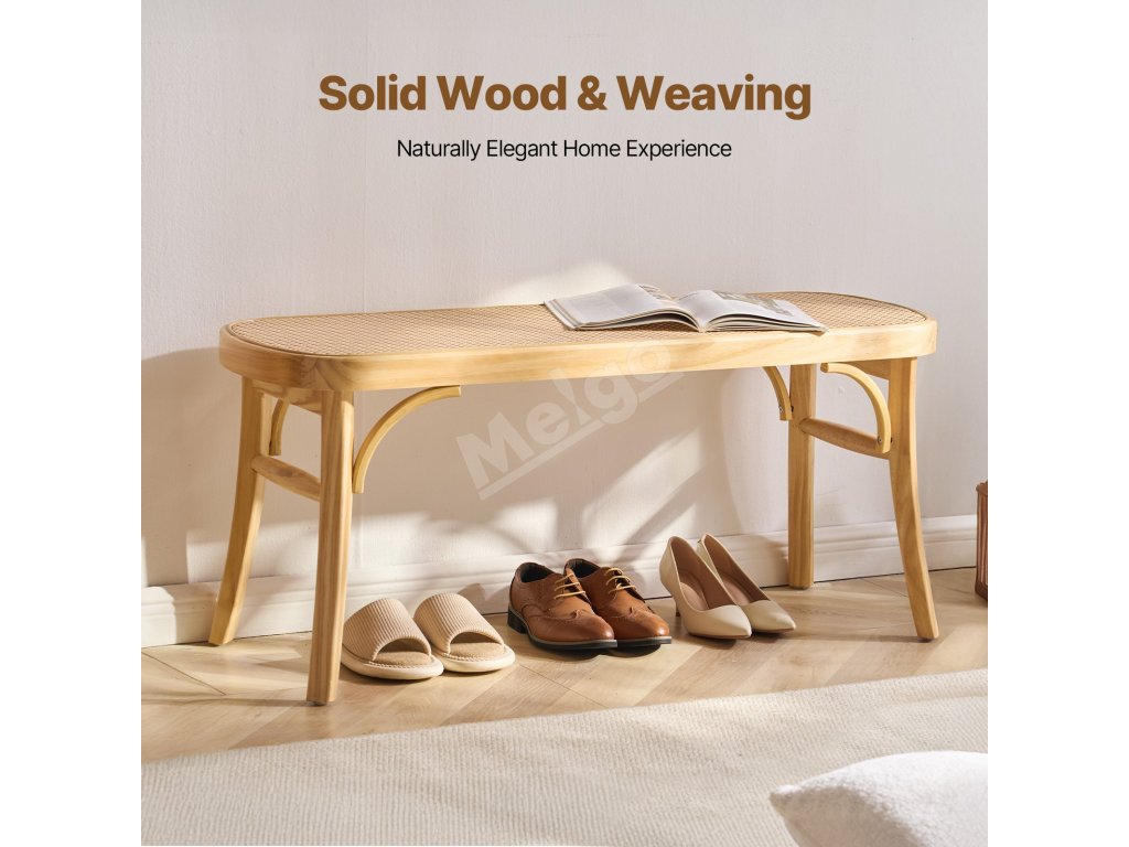 Ratanová lavica 43.3" s dubovými nohami ručne tkaný ratan do predsiene