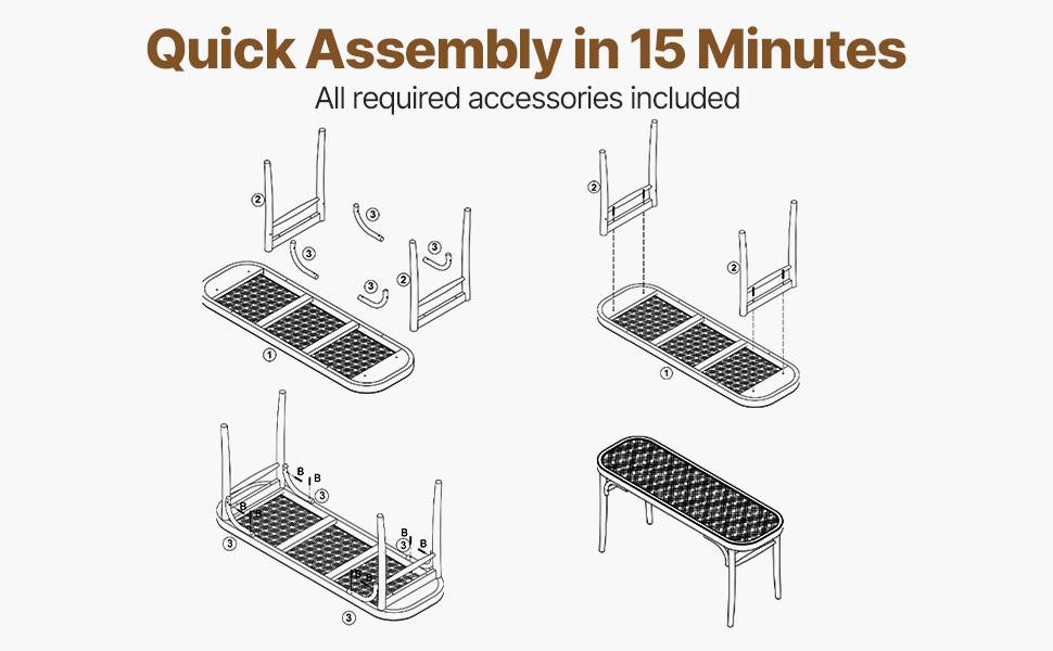 Táto drevená lavica sa dodáva so všetkými potrebnými dielmi a jasnými pokynmi, vďaka čomu ju rýchlo zostavíte približne za 15 minút.