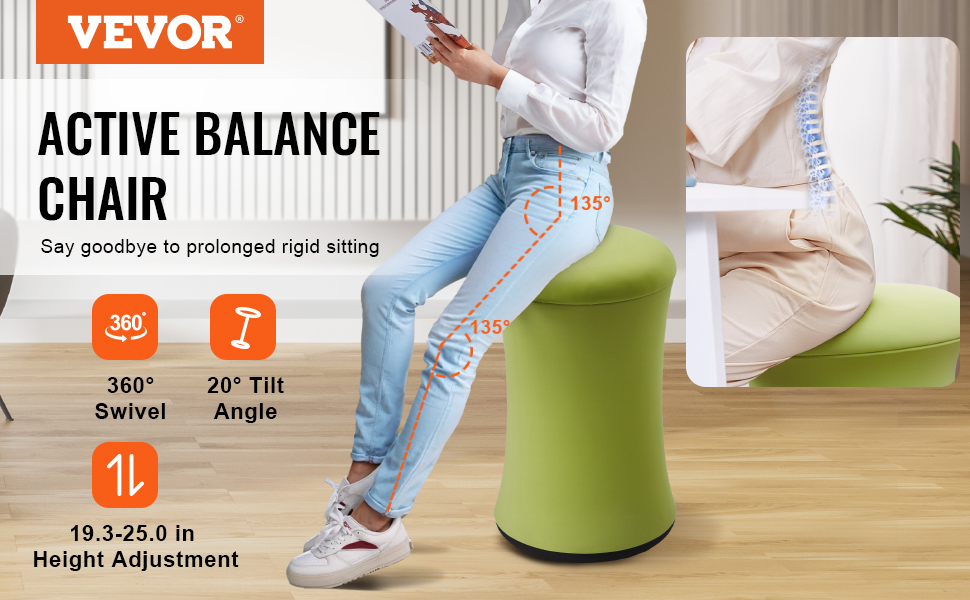 Táto aktívna stolička je vybavená 360° hojdaním s uhlom sklonu 20°, čo zaručuje rovnováhu a bezpečnosť, pomáha vám sústrediť sa a zvyšuje produktivitu. Je ideálna na dlhé kancelárske hodiny, zmierňuje stuhnutosť a podporuje lepšie držanie tela.